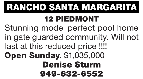 Open Sunday. $1,035,000 Denise Sturm 949-632-6552