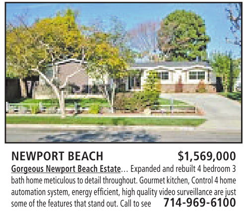 NEWPORT BEACH $1,569,000 Gorgeous Newport Beach Estate… Expanded and rebuilt 4bedroom 3 bath home meticulous to detail throughout.Gourmet kitchen,Control 4home automationsystem, energyefficient,highqualityvideo surveillance arejust someofthe features that standout.Calltosee 714-969-6100