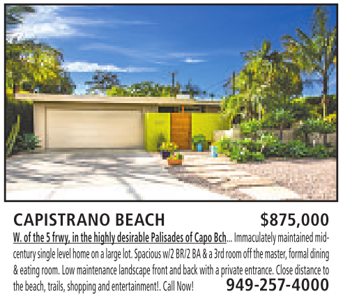 CAPISTRANO BEACH $875,000 W. of the5frwy, in thehighlydesirablePalisades of Capo Bch... Immaculatelymaintained midcenturysingle