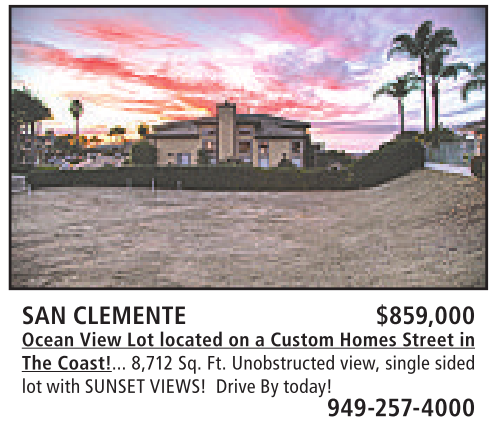 SAN CLEMENTE $859,000 Ocean View Lot located on a Custom Homes Street in