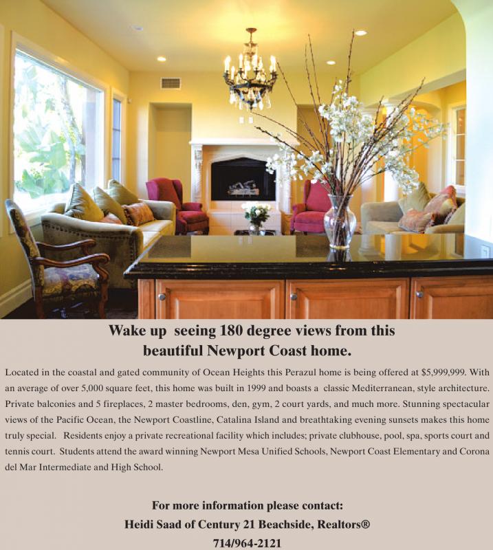 tennis court. Students attend the award winning Newport Mesa Unified Schools, Newport Coast Elementary and Corona