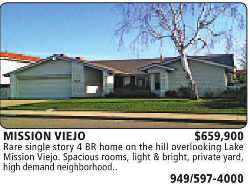 MISSION VIEJO $659,900 Rare single story 4 BR home on the hill overlooking Lake