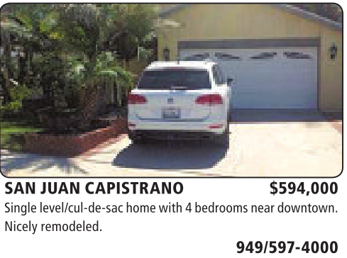 SAN JUAN CAPISTRANO $594,000 Single level/cul-de-sachome with 4bedroomsnear downtown. Nicelyremodeled.