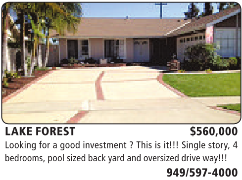 LAKE FOREST $560,000 Looking for agood investment ?This is it!!! Single story, 4 bedrooms,poolsizedback yard andoversizeddriveway!!!