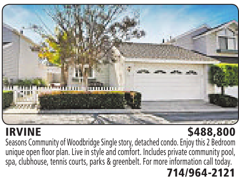 IRVINE $488,800 SeasonsCommunity of Woodbridge Singlestory,detachedcondo. Enjoy this 2Bedroom