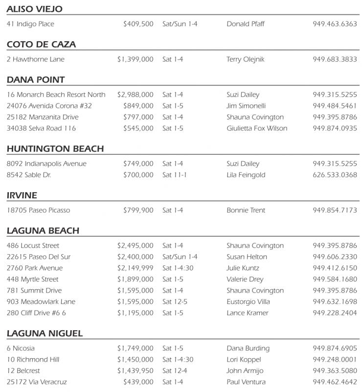 24076 Avenida Corona #32 $849,000 Sat 1-5 Jim Simonelli 949.484.5461