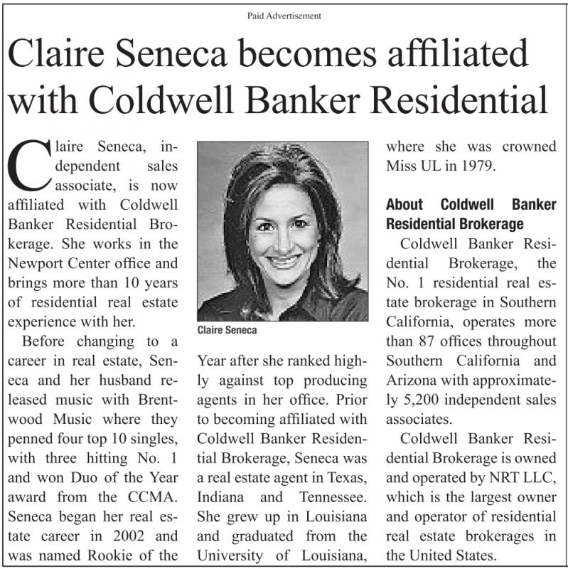 Claire Seneca becomes affiliated with Coldwell Banker Residential