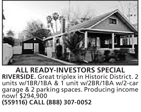 ALL READY-INVESTORS SPECIAL RIVERSIDE. Great triplex in Historic District. 2