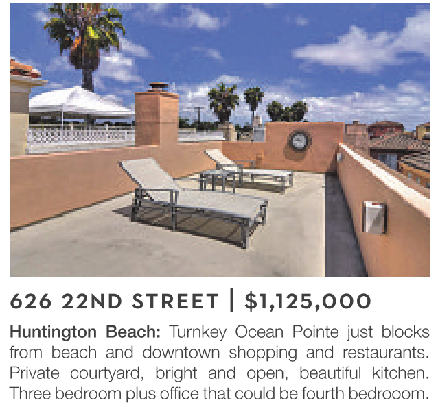 Huntington Beach: Turnkey Ocean Pointe just blocks from beach and downtown shopping and restaurants. Private courtyard, bright and open, beautiful kitchen. Three bedroom plus office that could be fourth bedrooom.