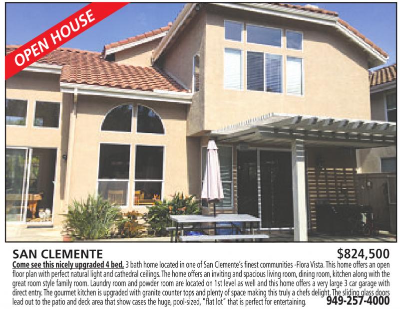 SAN CLEMENTE $824,500 Come see this nicely upgraded 4bed, 3bath home located in one of San Clemente’sfinest communities -Flora Vista.This home offers an open
