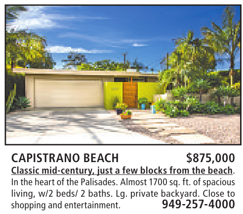 CAPISTRANO BEACH $875,000 Classic mid-century, just afew blocks from the beach.