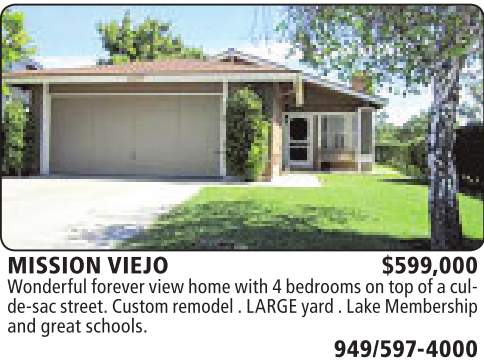 MISSION VIEJO $599,000 Wonderfulforeverviewhome with 4bedroomsontop of aculde-sac street.Customremodel.LARGE yard .LakeMembership andgreat schools.
