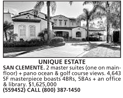 SF masterpiece boasts 4BRs, 5BAs + an office & library. $1,625,000 (559452) CALL (800) 387-1450