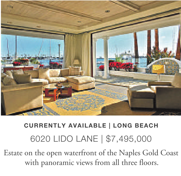 Estate on the open waterfront of the Naples Gold Coast with panoramic views from all three floors.