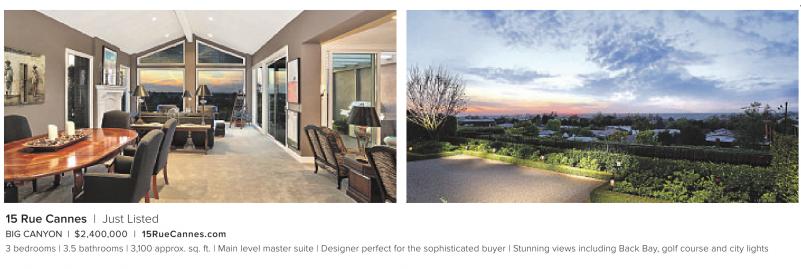 15 Rue Cannes | Just Listed BIG CANYON | $2,400,000 | 15RueCannes.com 3 bedrooms | 3.5 bathrooms | 3,100 approx. sq. ft. | Main level master suite | Designer perfect for the sophisticated buyer | Stunning views including Back Bay, golf course and city lights