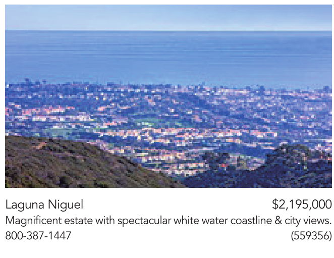 Laguna Niguel $2,195,000 Magnificent estate with spectacular white water coastline &city views. 800-387-1447 (559356)