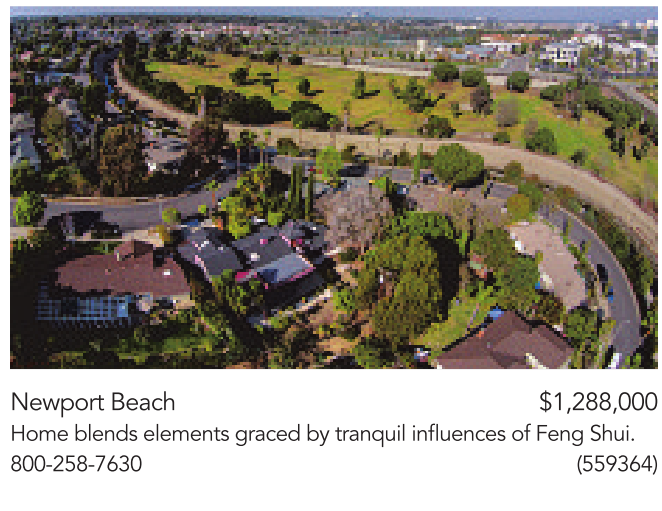 Newport Beach $1,288,000 Home blends elements graced by tranquil influences of Feng Shui. 800-258-7630 (559364)