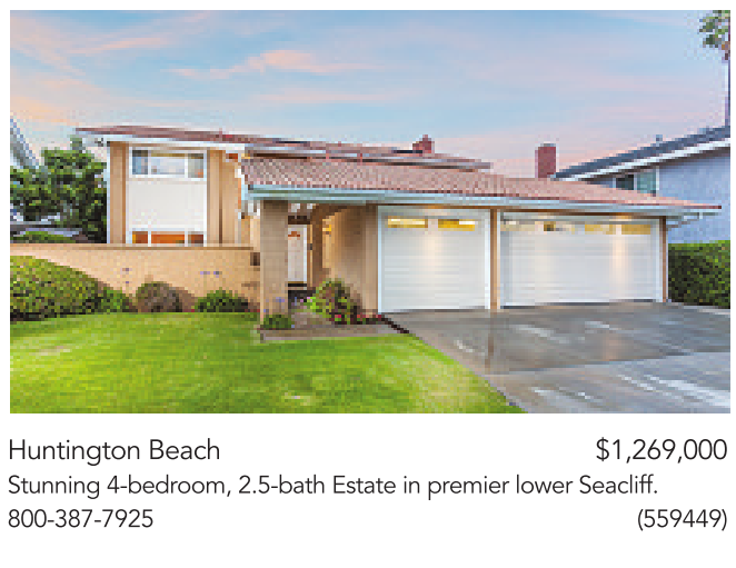 Huntington Beach $1,269,000 Stunning 4-bedroom, 2.5-bath Estate in premier lower Seacliff. 800-387-7925 (559449)