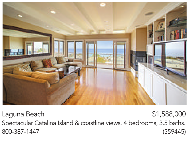 Laguna Beach $1,588,000 Spectacular Catalina Island &coastline views. 4bedrooms, 3.5 baths. 800-387-1447 (559445)