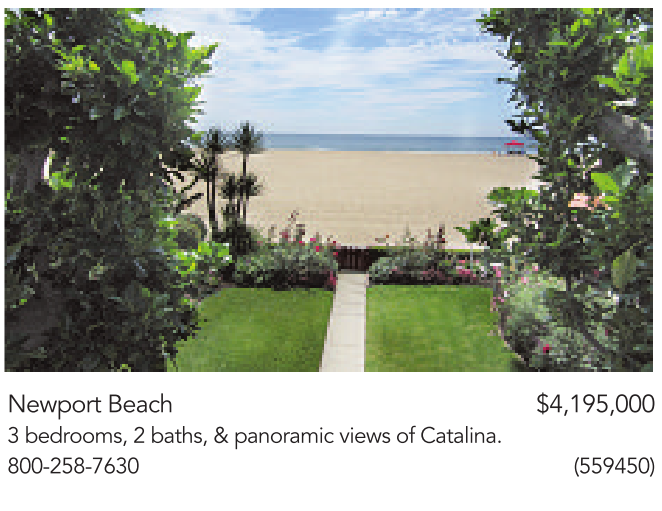 Newport Beach $4,195,000 3bedrooms, 2baths, &panoramic views of Catalina. 800-258-7630 (559450)