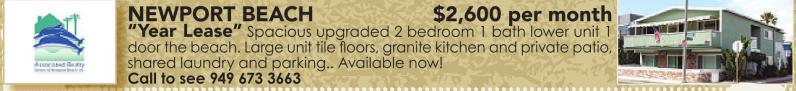 Spacious upgraded 2 bedroom 1 bath lower unit 1 door the beach. Large unit tile floors, granite kitchen and private patio, shared laundry and parking.. Available now! Call to see 949 673 3663