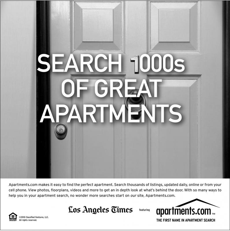 SEARCH 000s OF GREAT APARTMENTS Apartments.com makes it easy to find the perfect apartment. Search thousands of listings, updated daily, online or from your cell phone. View photos, floorplans, videos and more to get an in depth look at what’s behind the door. With so many ways to help you in your apartment search, no wonder more searches start on our site, Apartments.com. featuring ©2010 Classified Ventures, LLC. All rights reserved.
