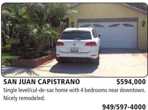 SAN JUAN CAPISTRANO $594,000 Single level/cul-de-sachome with 4bedroomsnear downtown. Nicelyremodeled.
