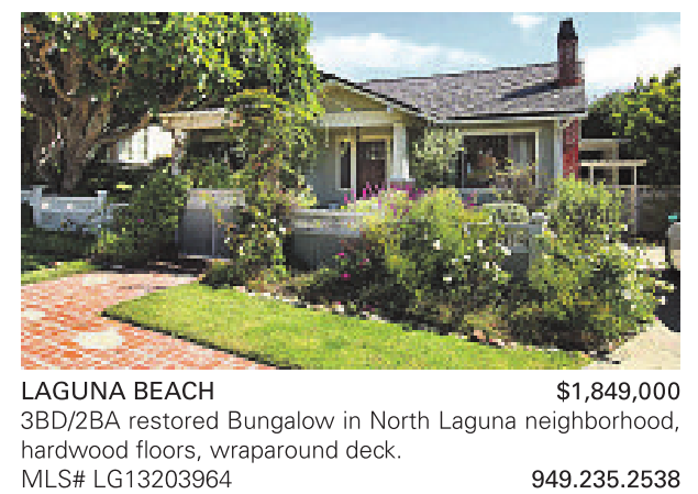 LAGUNA BEACH $1,849,000 3BD/2BA restored Bungalow in North Laguna neighborhood, hardwood floors, wraparound deck. MLS# LG13203964 949.235.2538