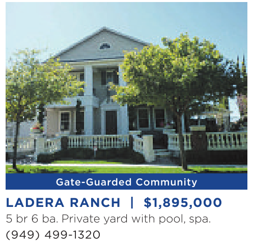 Gate-Guarded Community LADERA RANCH | $1,895,000 5 br 6 ba. Private yard with pool, spa. (949) 499-1320