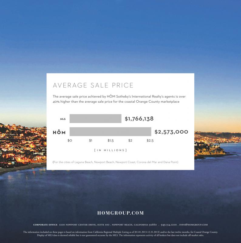 The average sale price achieved by HÔM Sotheby’s International Realty’s agents is over 40% higher than the average sale price for the coastal Orange County marketplace