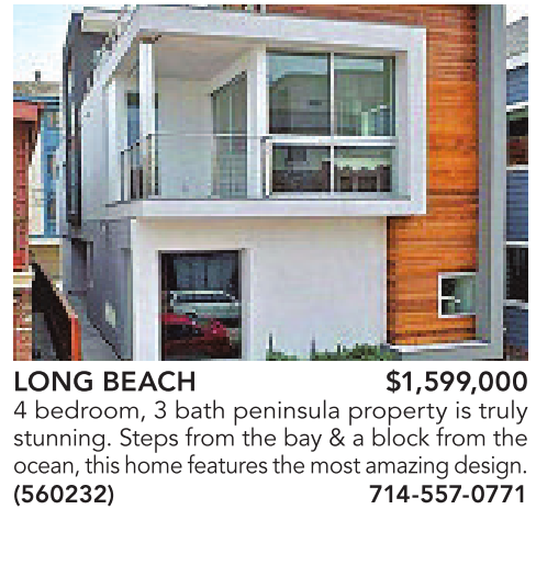 LONG BEACH $1,599,000 4 bedroom, 3 bath peninsula property is truly stunning. Steps from the bay & a block from the ocean, this home featuresthe most amazingdesign. (560232) 714-557-0771