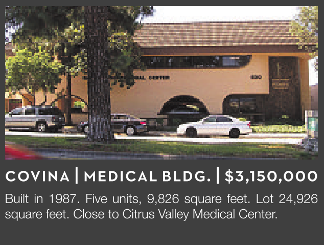 Built in 1987. Five units, 9,826 square feet. Lot 24,926 square feet. Close to Citrus Valley Medical Center.