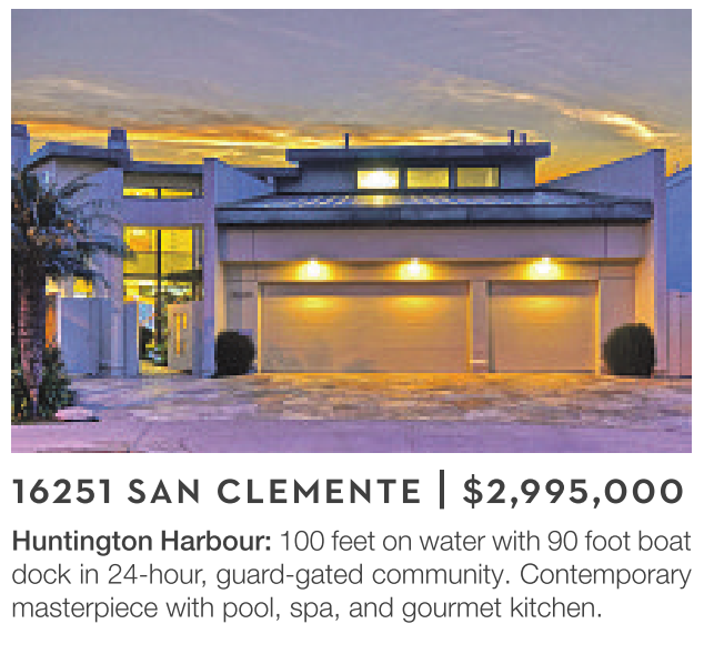 Huntington Harbour: 100 feet on water with 90 foot boat dock in 24-hour, guard-gated community. Contemporary masterpiece with pool, spa, and gourmet kitchen.