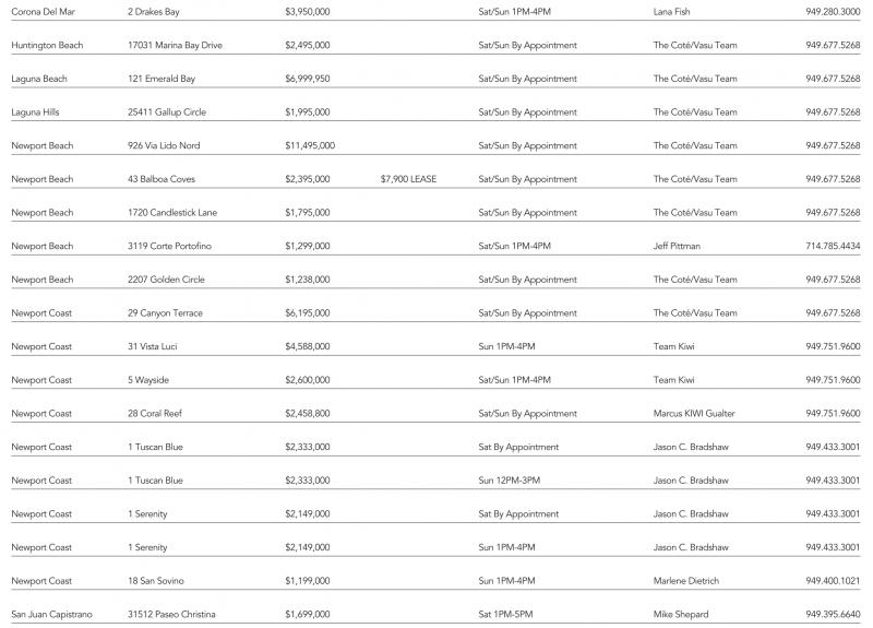 Newport Coast 1Serenity $2,149,000 Sun 1PM-4PM Jason C. Bradshaw 949.433.3001