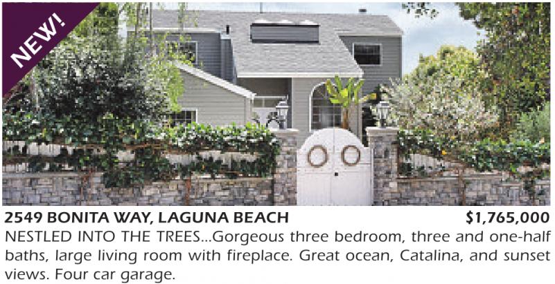 2549 BONITA WAY, LAGUNA BEACH $1,765,000 NESTLED INTO THE TREES...Gorgeous three bedroom, three and one-half baths, large living room with fireplace. Great ocean, Catalina, and sunset views. Four car garage.