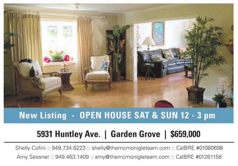 Shelly Cofini :: 949.734.6223 :: shelly@themcmonigleteam.com :: CalBRE #01080698 Amy Sessner :: 949.463.1409 :: amy@themcmonigleteam.com :: CalBRE #01261158