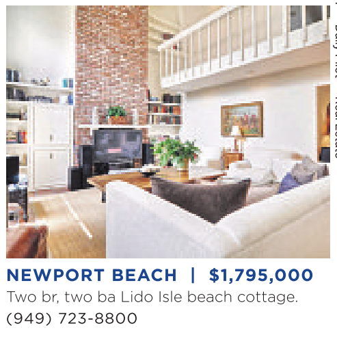 Two br, two ba Lido Isle beach cottage. (949) 723-8800