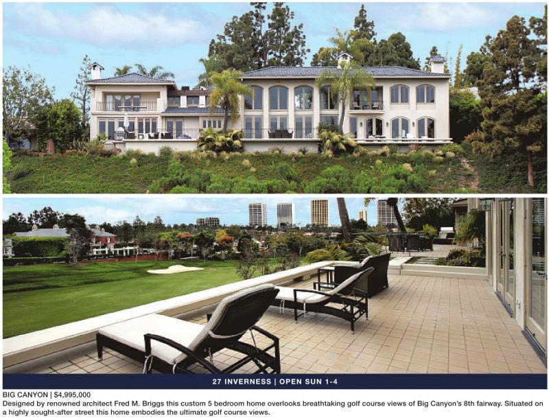 27 INVERNESS | OPEN SUN 1-4 BIG CANYON | $4,995,000 Designed by renowned architect Fred M. Briggs this custom 5 bedroom home overlooks breathtaking golf course views of Big Canyon’s 8th fairway. Situated on a highly sought-after street this home embodies the ultimate golf course views.