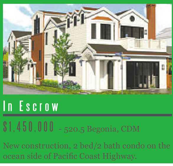 New construction, 2 bed/2 bath condo on the ocean side of Pacific Coast Highway.