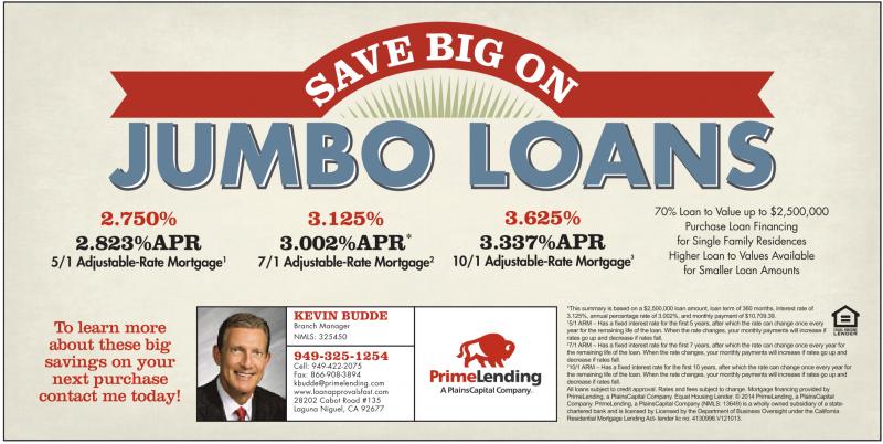 *This summary is based on a$2,500,000 loan amount, loan term of 360 months, interest rate of 3.125%, annual percentage rate of 3.002%, and monthly payment of $10,709.39. 1 5/1 ARM –Has afixed interest rate for the first 5years, after which the rate can change once every year for the remaining life of the loan. When the rate changes, your monthly payments will increase if rates go up and decrease if rates fall. 2 7/1 ARM –Has afixed interest rate for the first 7years, after which the rate can change once every year for the remaining life of the loan. When the rate changes, your monthly payments will increase if rates go up and decrease if rates fall. 3 10/1 ARM –Has afixed interest rate for the first 10 years, after which the rate can change once every year for the remaining life of the loan. When the rate changes, your monthly payments will increase if rates go up and decrease if rates fall. All loans subject to credit approval. Rates and fees subject to change. Mortgage financing provided by PrimeLending, aPlainsCapital Company.Equal Housing Lender.©2014 PrimeLending, aPlainsCapital Company.PrimeLending, aPlainsCapital Company (NMLS: 13649) is awholly owned subsidiary of astatechartered bank and is licensed by Licensed by the Department of Business Oversight under the California Residential Mortgage Lending Act- lender lic no. 4130996.V121013.