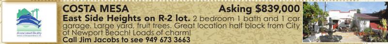 2 bedroom 1 bath and 1 car garage. Large yard, fruit trees. Great location half block from City of Newport Beach! Loads of charm! Call Jim Jacobs to see 949 673 3663
