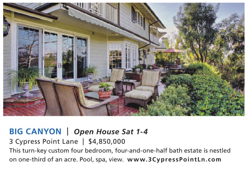BIG CANYON | Open House Sat 1-4 3 Cypress Point Lane | $4,850,000 This turn-key custom four bedroom, four-and-one-half bath estate is nestled on one-third of an acre. Pool, spa, view. www.3CypressPointLn.com