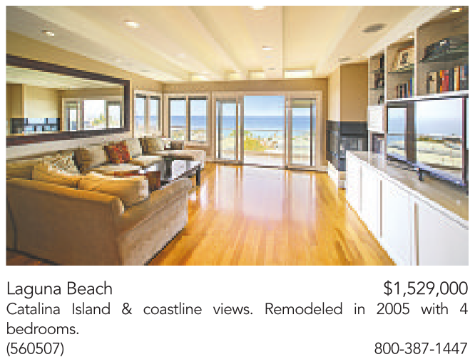 Laguna Beach $1,529,000 Catalina Island & coastline views. Remodeled in 2005 with 4 bedrooms. (560507) 800-387-1447
