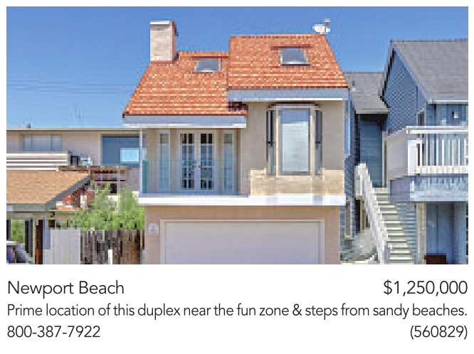Newport Beach $1,250,000 Prime location of this duplex near the fun zone &steps from sandy beaches. 800-387-7922 (560829)