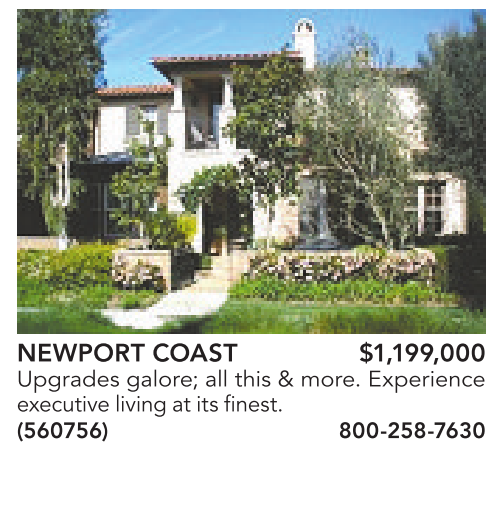 NEWPORT COAST $1,199,000 Upgrades galore; all this & more. Experience executivelivingatits finest. (560756) 800-258-7630