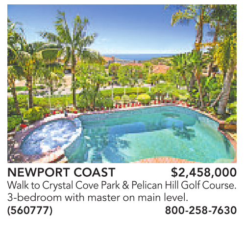 NEWPORT COAST $2,458,000 Walk to CrystalCove Park &Pelican Hill Golf Course. 3-bedroom with master on main level. (560777) 800-258-7630