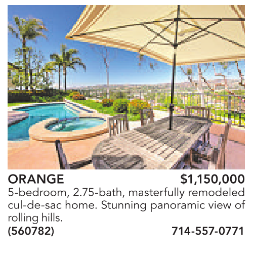 ORANGE $1,150,000 5-bedroom, 2.75-bath, masterfully remodeled cul-de-sac home. Stunning panoramic view of rolling hills. (560782) 714-557-0771