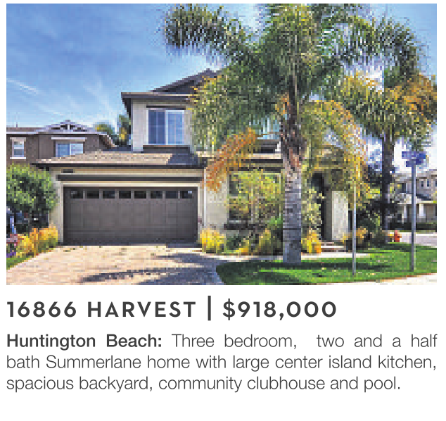 Huntington Beach: Three bedroom, two and a half bath Summerlane home with large center island kitchen, spacious backyard, community clubhouse and pool.