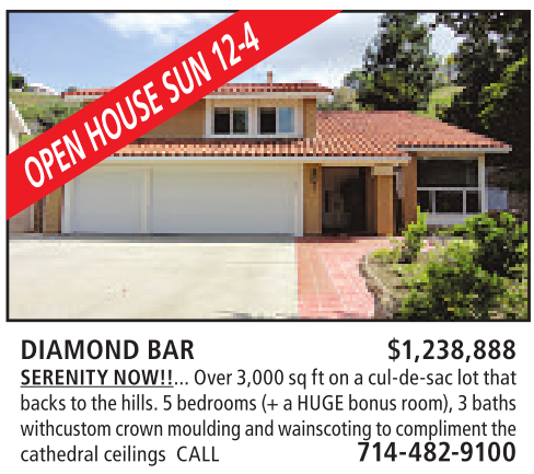 backstothe hills. 5bedrooms(+aHUGE bonusroom),3baths withcustomcrown moulding andwainscotingtocomplimentthe cathedral ceilings CALL 714-482-9100