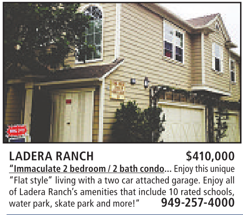 “Flat style” living with atwo car attached garage. Enjoy all of Ladera Ranch’s amenities that include 10 rated schools, waterpark, skate park andmore!” 949-257-4000